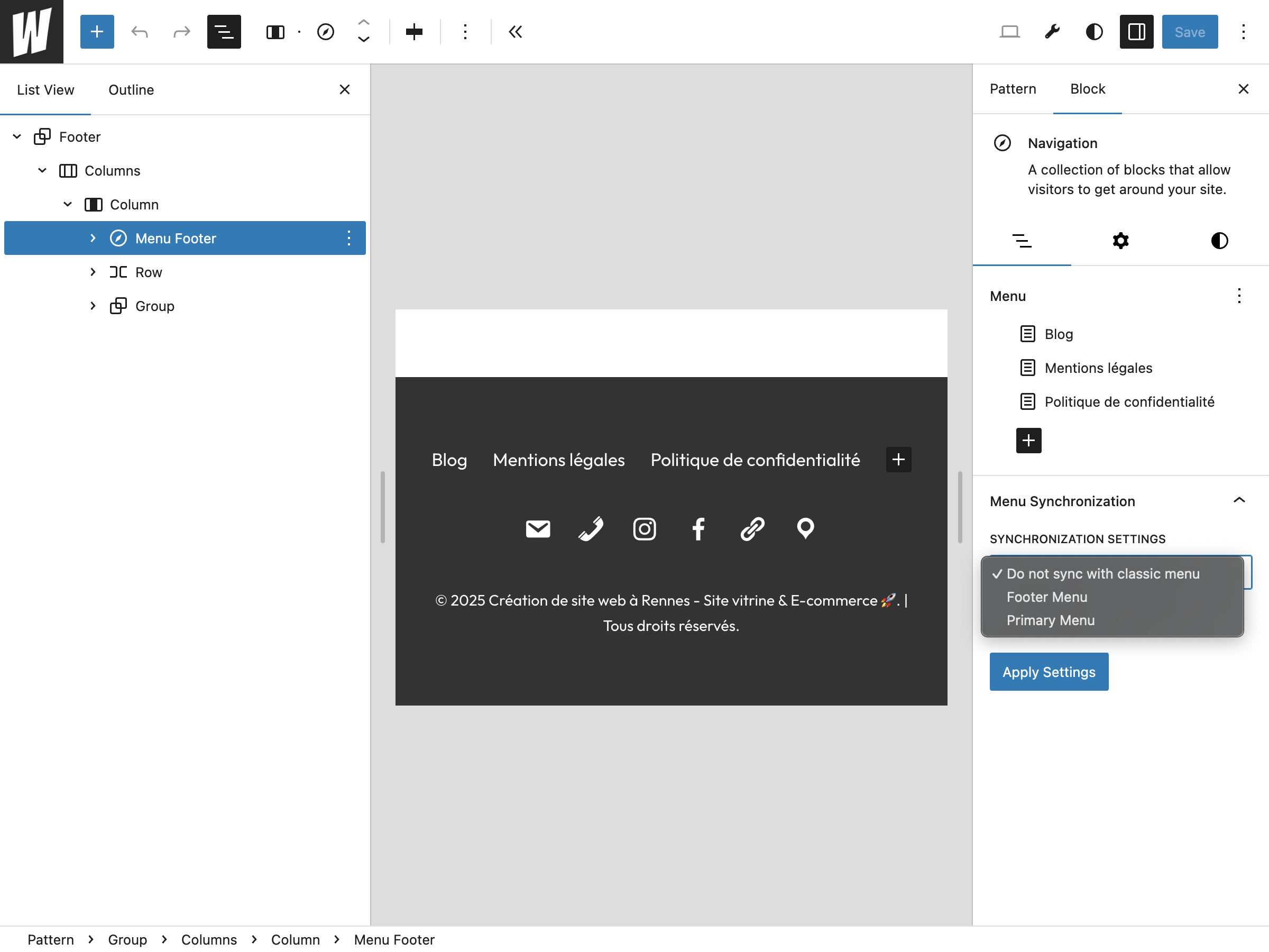 - Edit any Navigation block in the Block Editor.
